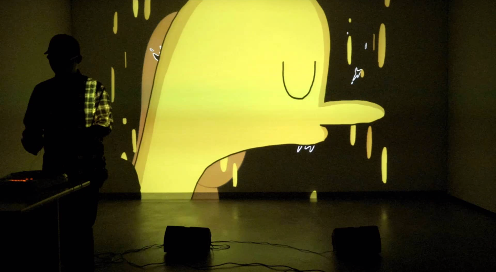 패드와 전자퍼커션에 센서를 부착하여 연주를 할 때마다 센서에 저장된 영상들이 나온다.
